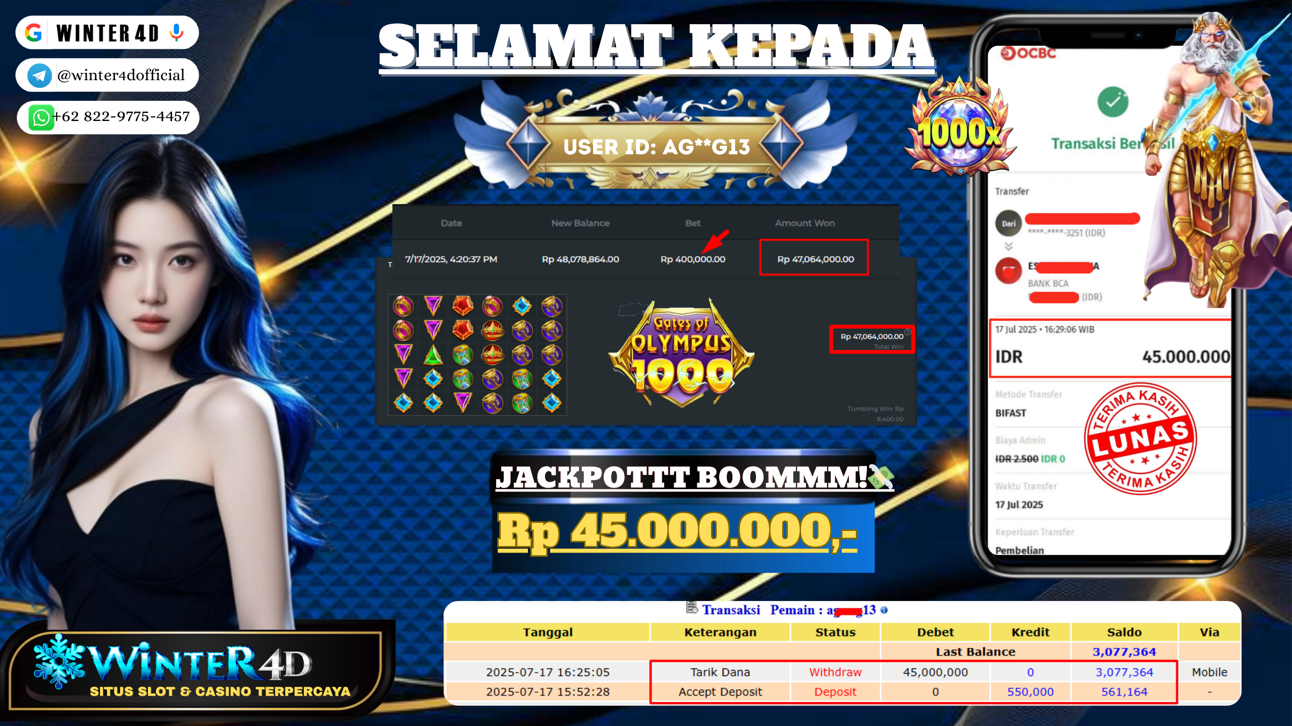 KUMPULAN BUKTI JACKPOT WINTER4D | MENANG BERAPAPUN DIBAYAR LUNAS